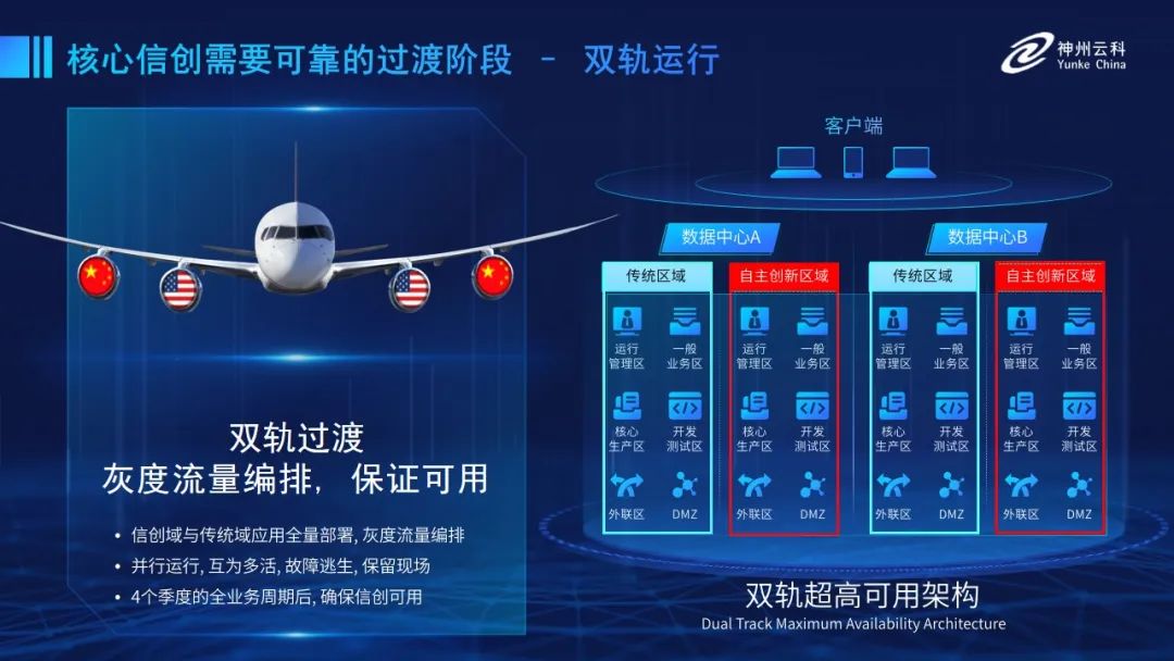 為幫助客戶更好地應對數(shù)字經濟時代對應用可持續(xù)性的高要求,實現(xiàn)信創(chuàng)與數(shù)字化兼得,leyu.樂魚推出了雙軌超高可用架構。雙軌超高可用架構在雙活數(shù)據中心的分區(qū)調度基礎上,增加信創(chuàng)域和非信創(chuàng)域的分域調度,實行信創(chuàng)域與傳統(tǒng)域應用全量部署,使雙中心運營變?yōu)殡p中心四區(qū)域并行運行,互為多活,將傳統(tǒng)架構變?yōu)榉謪^(qū)分域協(xié)同的多活雙軌超高可用架構。幫助客戶在新架構下,保障“信創(chuàng)”的同時解決性能瓶頸,提升穩(wěn)定性,保證應用可持續(xù)性,最終實現(xiàn)信創(chuàng)區(qū)域和非信創(chuàng)區(qū)域的平滑過渡,完成國產化替代目標?!?/p>
