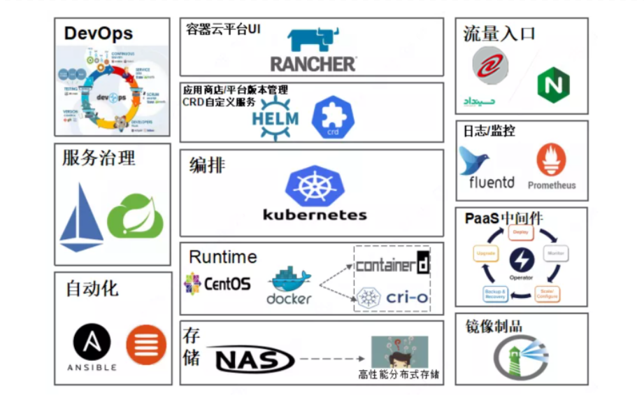 ?分層架構(gòu):以Kubernetes為核心組件的PaaS平臺,整合EFK,Prometheus,Harbor等附加組件,PaaS服務(wù)分為三個平面,分別為管理平面、控制平面、計算平面。